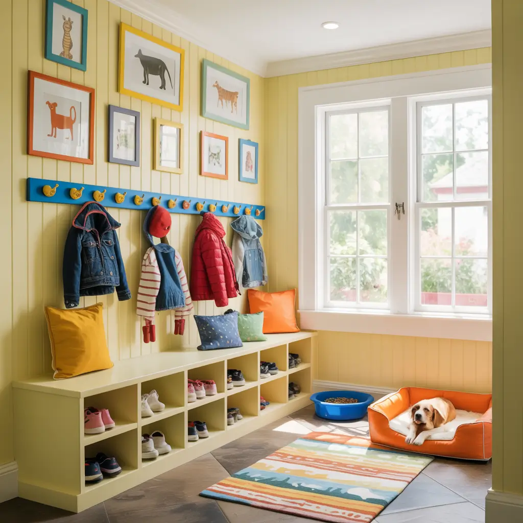 7. Colorful Mudroom for Kids and Pets