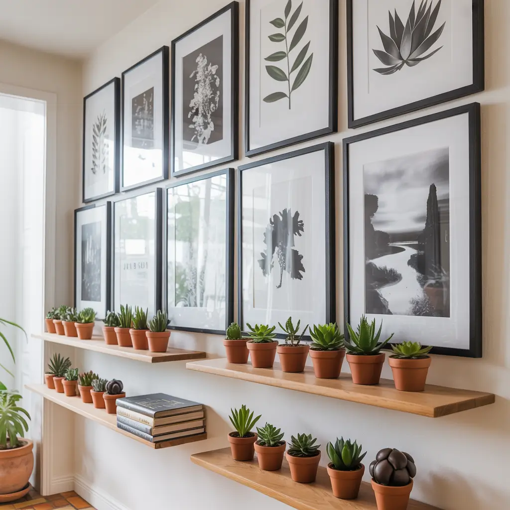 One approach I love: plan your gallery wall on the floor first. Lay out all your elements—hooks, shelves, frames, mirrors—and play with arrangements until you find one that works. Then photograph it and use that as your guide for installation. This prevents unnecessary nail holes and frustration.