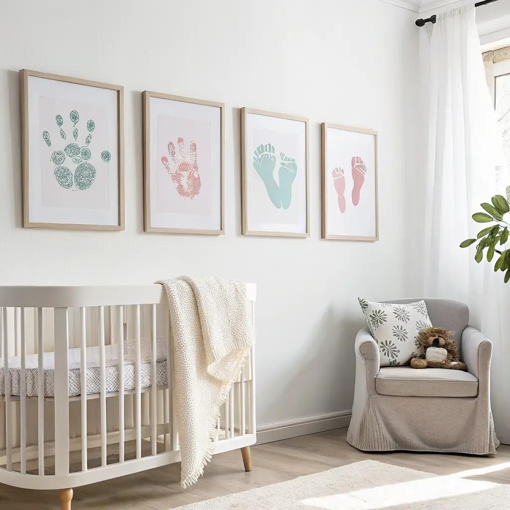 Okay, prepare for the feels on this one. Framed baby handprint and footprint art gets me every single time. There’s something about those tiny prints that just captures a moment in time, and having them beautifully framed on the wall turns them into actual art rather than just crafts shoved in a drawer somewhere.