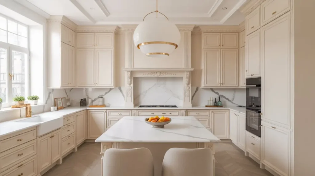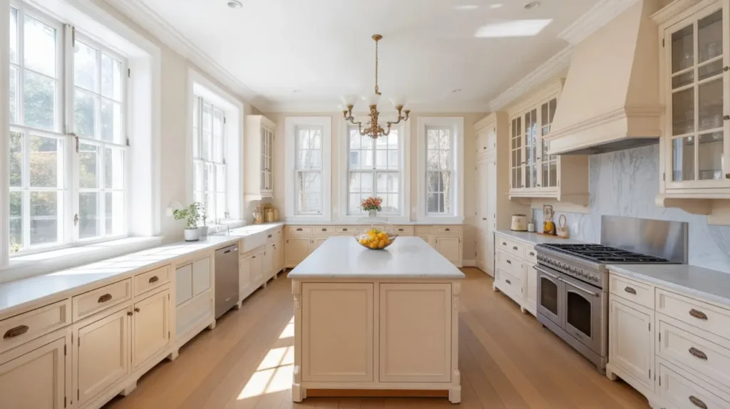Let’s talk about going all out. Luxury kitchens with off white cabinets prove that you don’t need dark, dramatic colors to create a high-end, expensive-looking space. Sometimes subtle sophistication wins over bold statements.