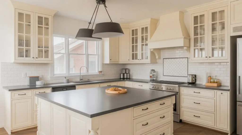 Here’s what I learned the hard way: make sure your two colors complement each other and don’t fight for attention. Test large samples in your actual kitchen lighting before committing. Lighting can completely change how colors look, and you don’t want any nasty surprises after installation.