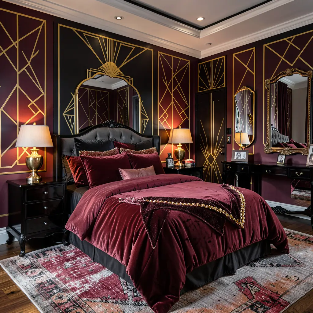 I added Art Deco elements to my red and black bedroom through geometric wallpaper, mirrored furniture, and gold accents. The combination feels both vintage and completely current. It’s sophistication that transcends decades.