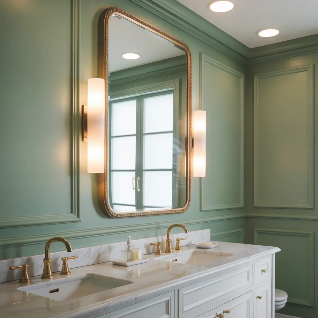 Lighting strategy for sage green bathrooms: