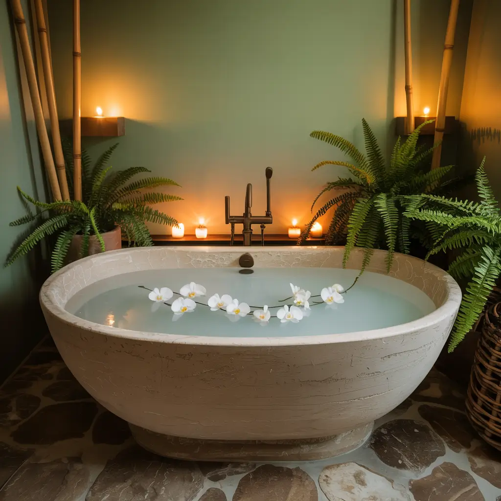 Add a rainfall showerhead if your budget allows. The combination of sage green tiles with water cascading over you feels like you’re showering in a forest (minus the bugs and dirt). Install floating shelves to display rolled towels, candles, and small plants. Organization matters in spa design—clutter kills the zen vibe.