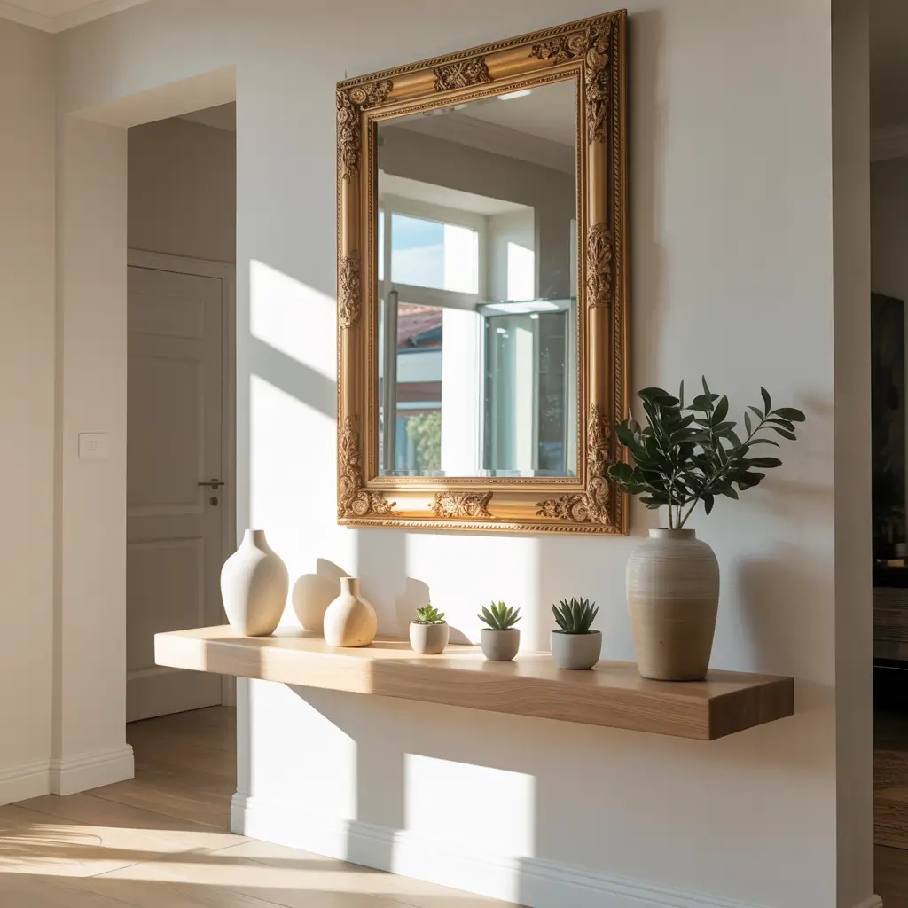 Want to make your tiny entryway feel twice its size? Mirrors are your secret weapon. They reflect light, create depth, and trick the eye into perceiving more space than actually exists. It’s basically magic, but for decorating.