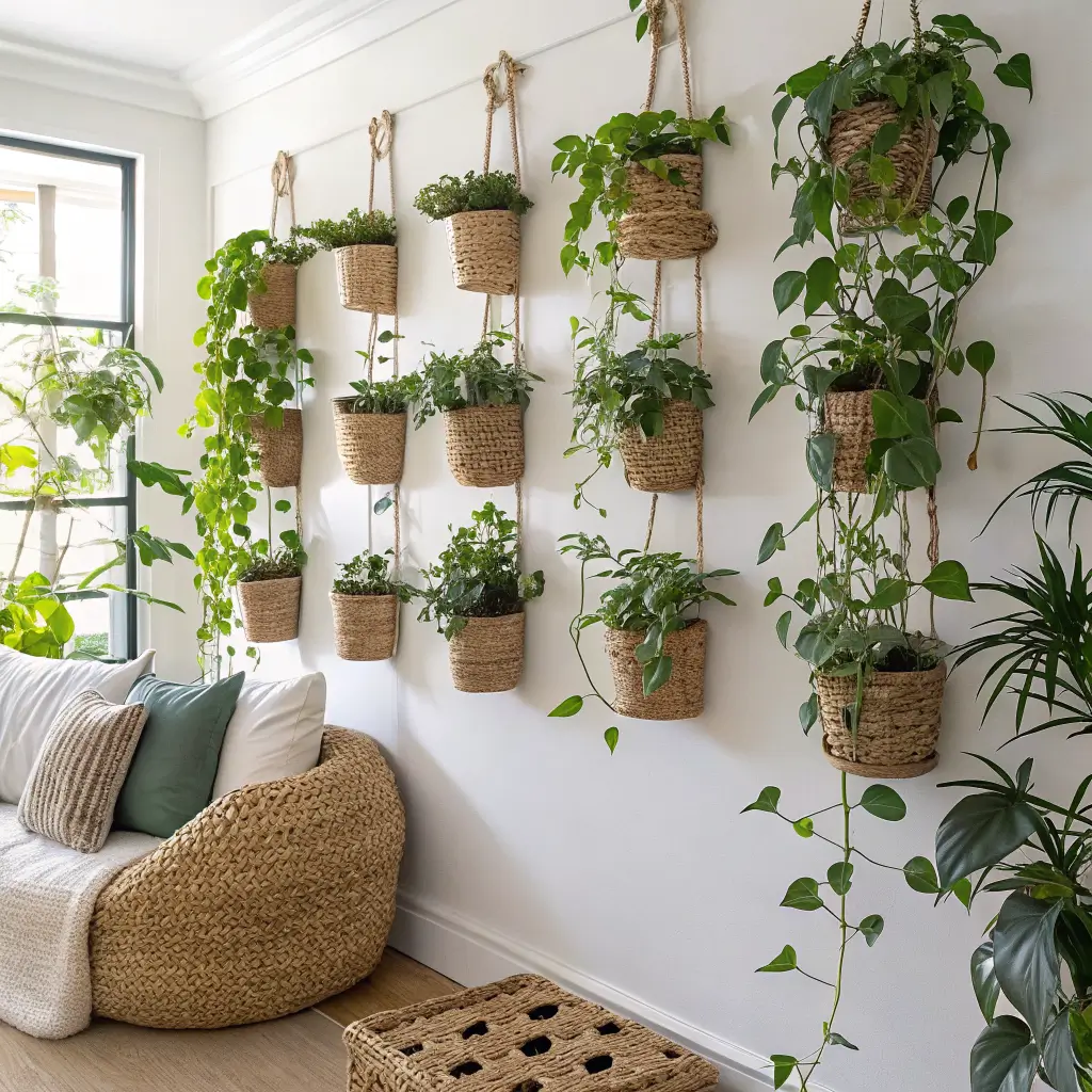 Enter the hanging wall planter grid. I’m talking about installing a small geometric grid system (metal ones look especially slick) that lets you hang multiple small planters at different heights. Think of it like vertical gardening meets modern art installation.