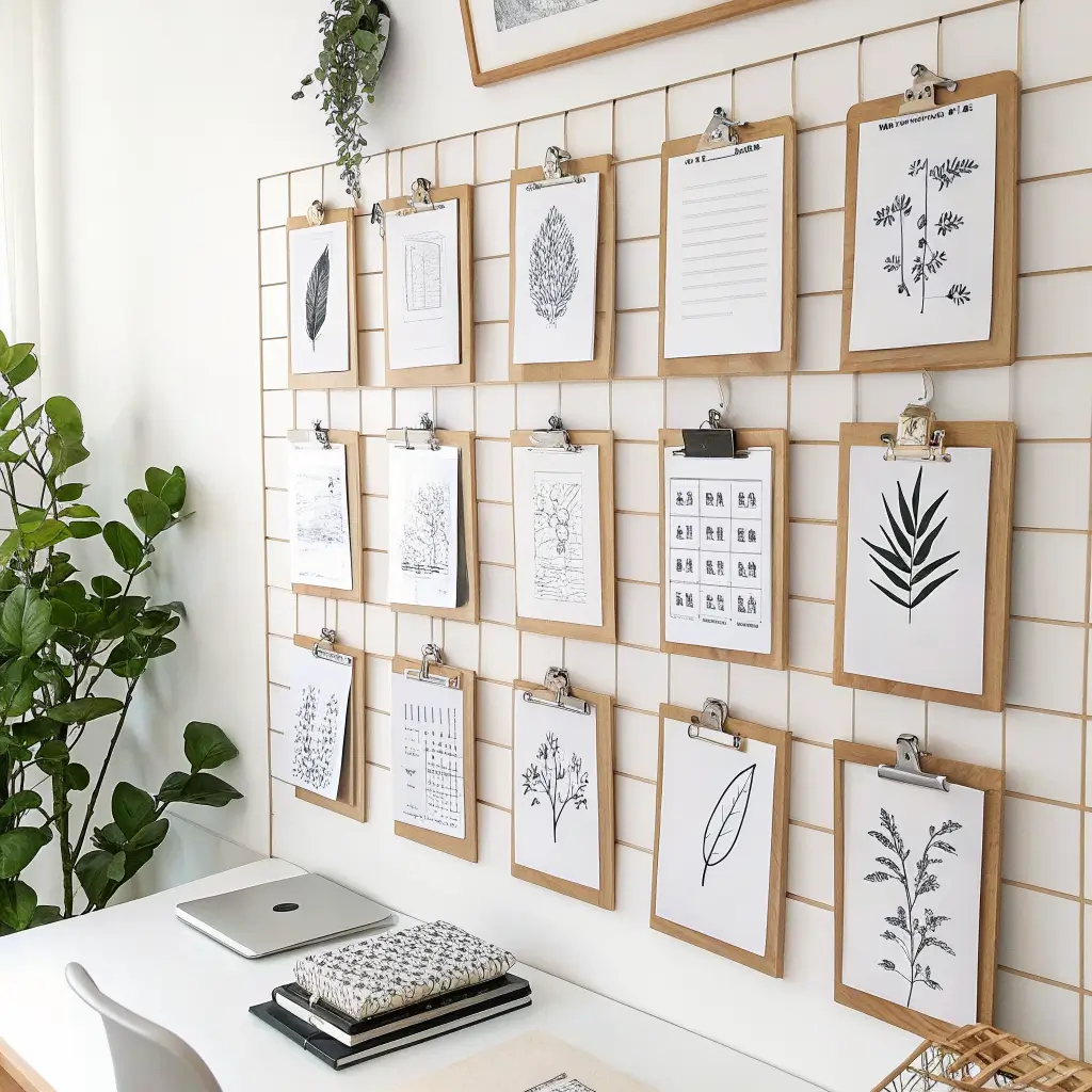 Styling tip: Even though the content rotates, keep the clipboard frames themselves cohesive. All wood, all metal, or all one color. This creates visual consistency even when the clipped content is varied. Otherwise, it can start looking chaotic rather than curated.