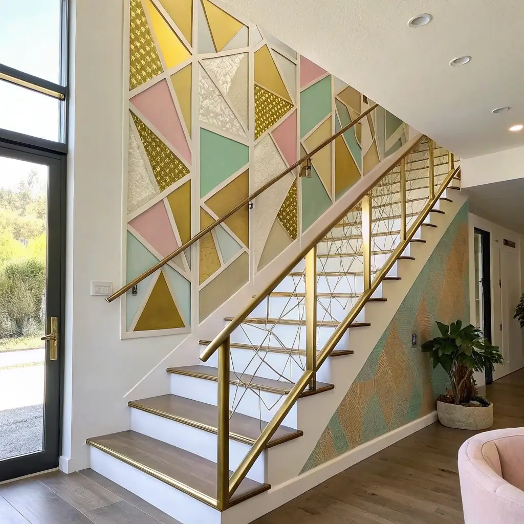 - Acoustic geometric panelsย โ Here’s a bonus: some of these actually absorb sound. If your stairwell echoes like a cave, these are a practicalย andย aesthetic solution.