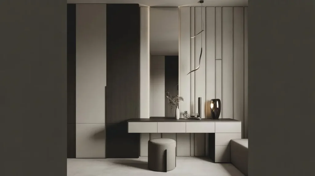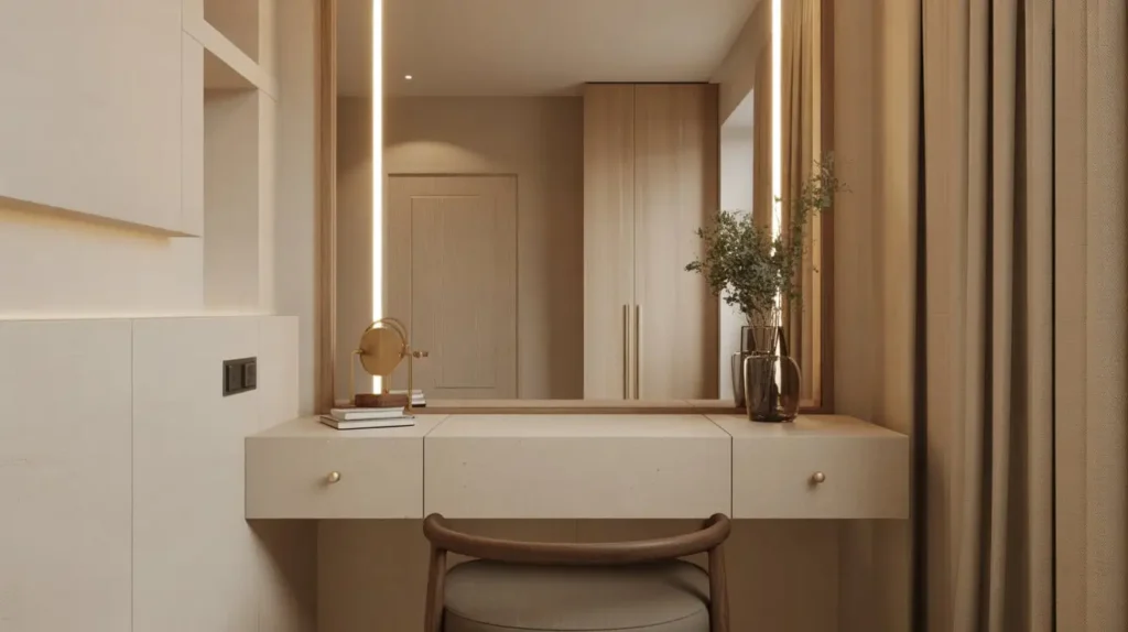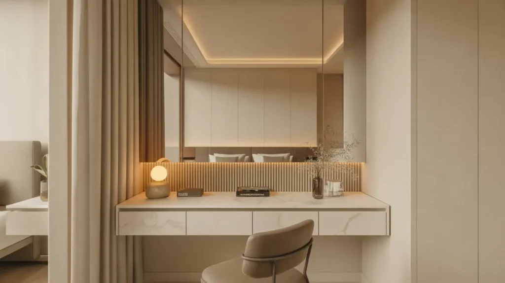 Not everyone has the luxury of a sprawling master suite, and that’s totally fine. A compact modern vanity proves that you don’t need tons of square footage to have a stylish, functional makeup area. The key is smart design that maximizes every inch without feeling cramped or cluttered.