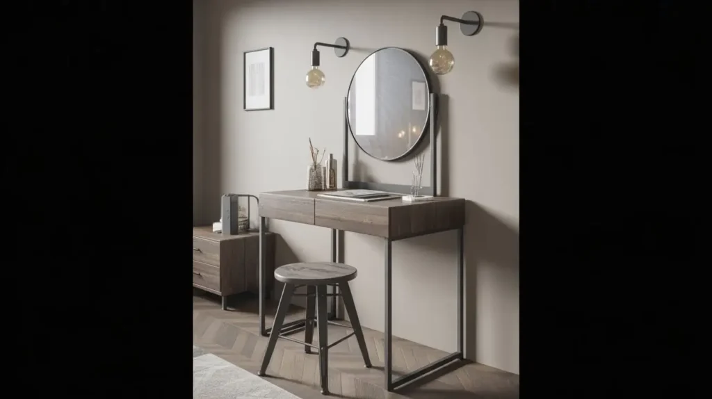This works brilliantly in modern, urban, or eclectic spaces. If your bedroom looks like it belongs in a converted warehouse, this is your vanity.