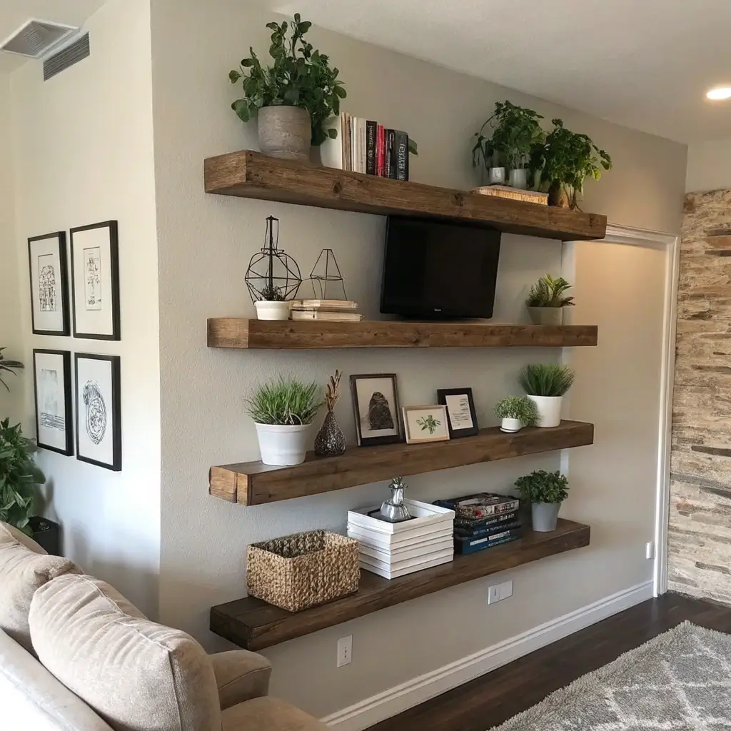 The best part about floating shelves? They’re functional art. You get storage AND decoration in one shot.