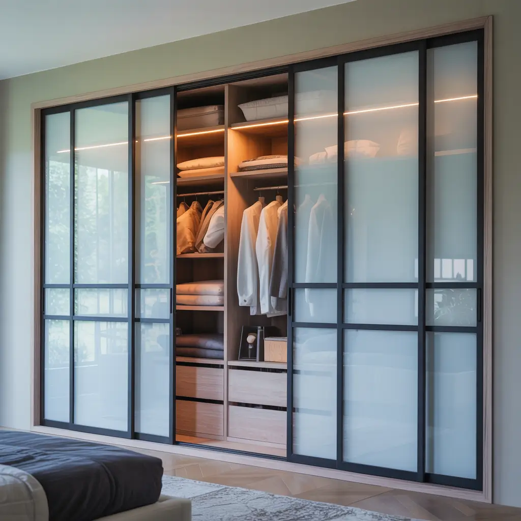 Glass and mirror wardrobes create the illusion of doubled space while adding sophisticated style to any bedroom. Frosted glass panels hide clutter while still feeling light and airy, while clear glass showcases your best pieces like a boutique display.