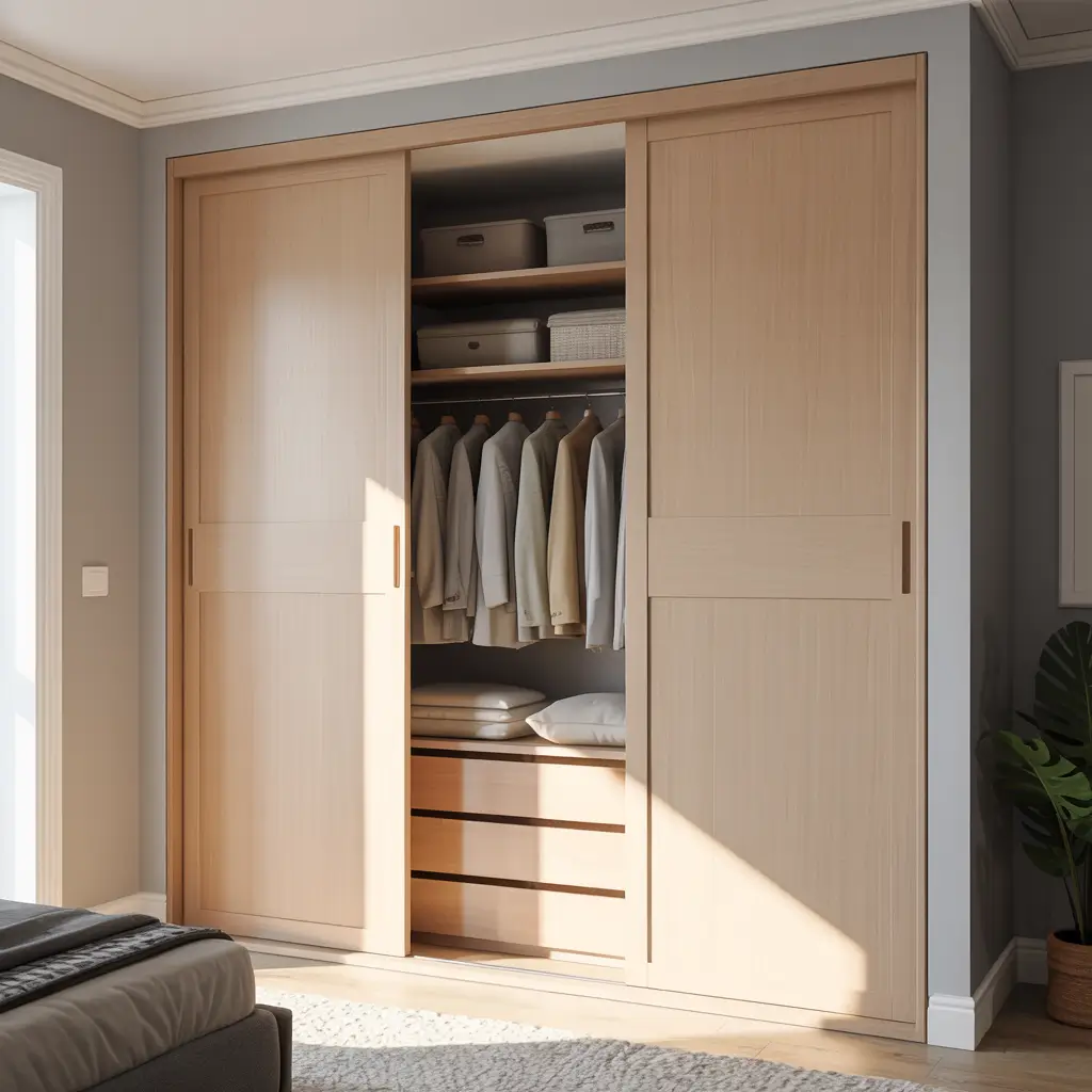 Ever tried opening traditional hinged wardrobe doors in a cramped bedroom? It’s like playing Tetris with furniture, and nobody wins that game. Sliding door wardrobes eliminate this headache completely by moving parallel to the wall instead of swinging outward.