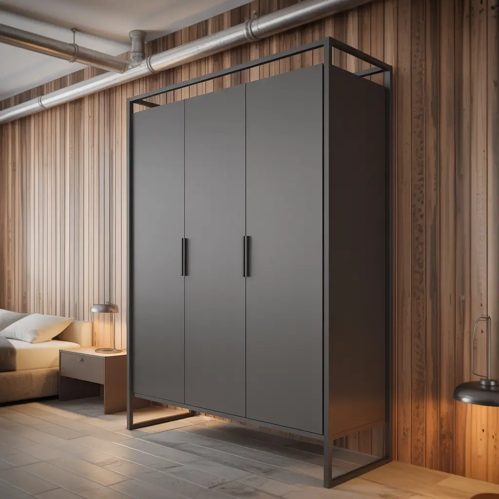 If you’re into that edgy, loft-apartment aesthetic, industrial-style wardrobes are calling your name. Think exposed metal frames, open shelving, and a raw, unfinished vibe.