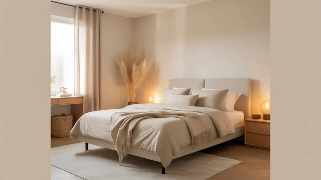 Neutrals get a bad rap for being boring, but hear me out—they’re actually the MVPs of warm bedroom aesthetics. I’m talking about those creamy beiges, soft taupes, and warm grays that make your eyes relax the second you see them.
