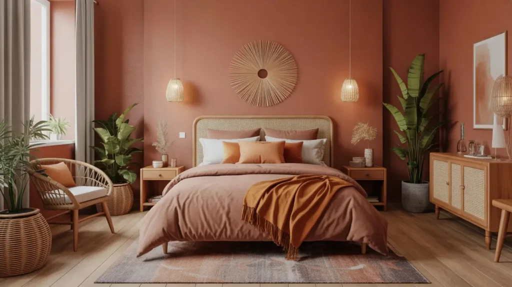 Terracotta has made such a comeback, and I’m here for it. This warm, earthy orange-red brings instant Mediterranean warmth to any bedroom.
