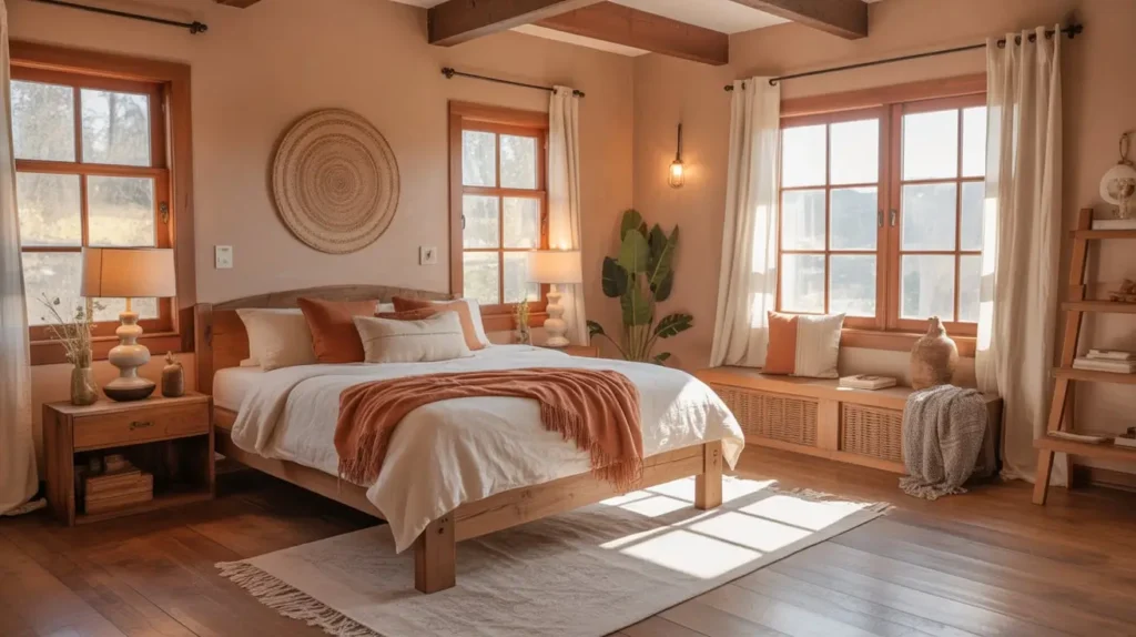 Want to feel like you’re sleeping in a cozy cabin without actually moving to the woods? The rustic warm retreat is your answer. I absolutely love this aesthetic because it brings nature indoors in the most comforting way possible.