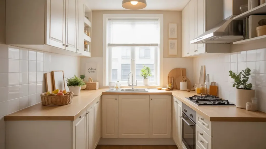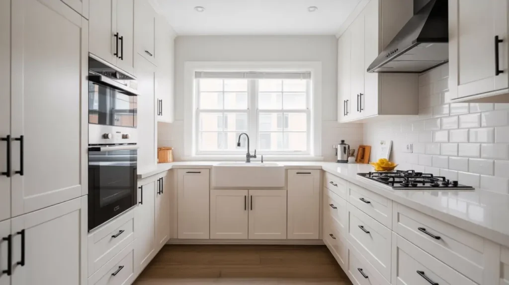 Small kitchens can be tricky little monsters, can’t they? But here’s your advantage: white is your best friend for making compact spaces feel larger. Light colors reflect more light, and that reflection tricks your brain into perceiving more space than actually exists.