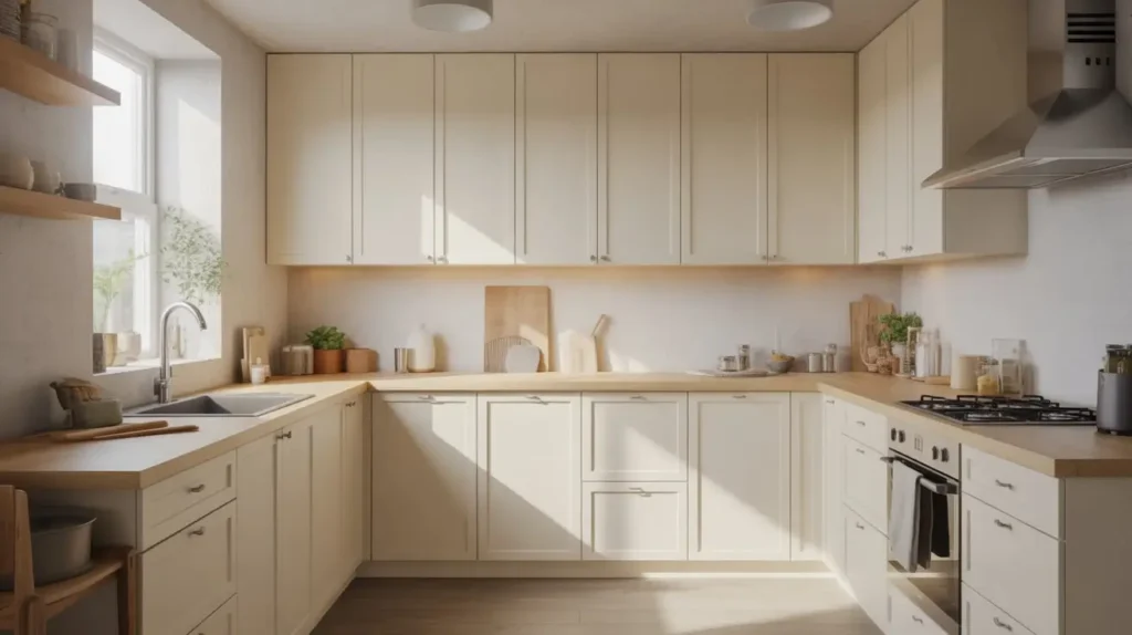 Minimalism isn’t just a design trend—it’s a lifestyle choice that makes small kitchens actually functional. Minimalist white cabinets are all about clean lines, hidden storage, and zero visual clutter.