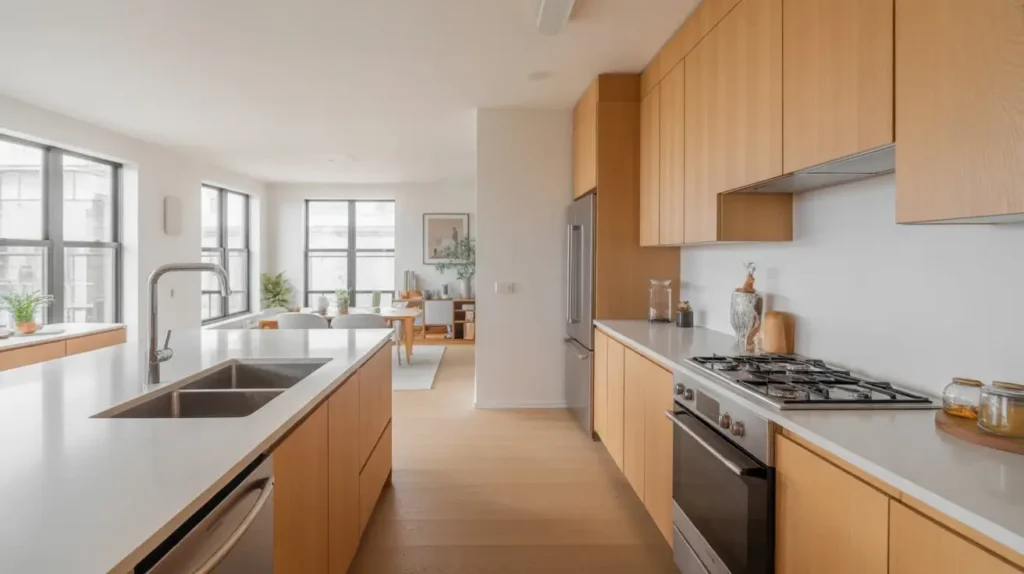 Ever noticed how some small kitchens feel efficient while others just feel cramped? Layout makes all the difference. In tight spaces, galley layouts or L-shaped configurations with white oak cabinets work better than trying to cram in an island that no one can actually walk around.