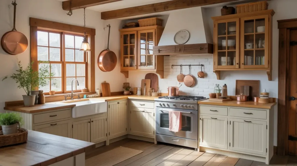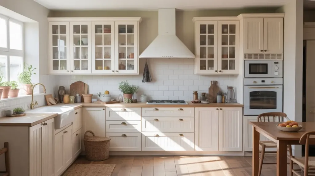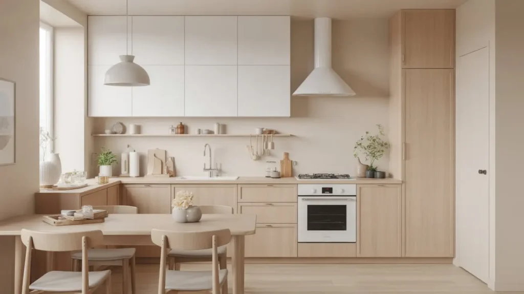 This style works especially well in smaller kitchens because the light colors and simple lines prevent the space from feeling cramped. Everything serves a purpose, nothing’s there just for show, and somehow it all feels incredibly welcoming.