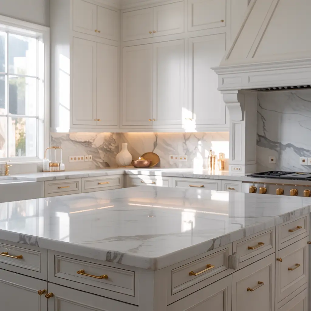 Want to know the fastest way to elevate white shaker cabinets? Marble countertops. We’re talking Carrara, Calacatta, or Statuario—those beautiful slabs with grey veining that look like art.