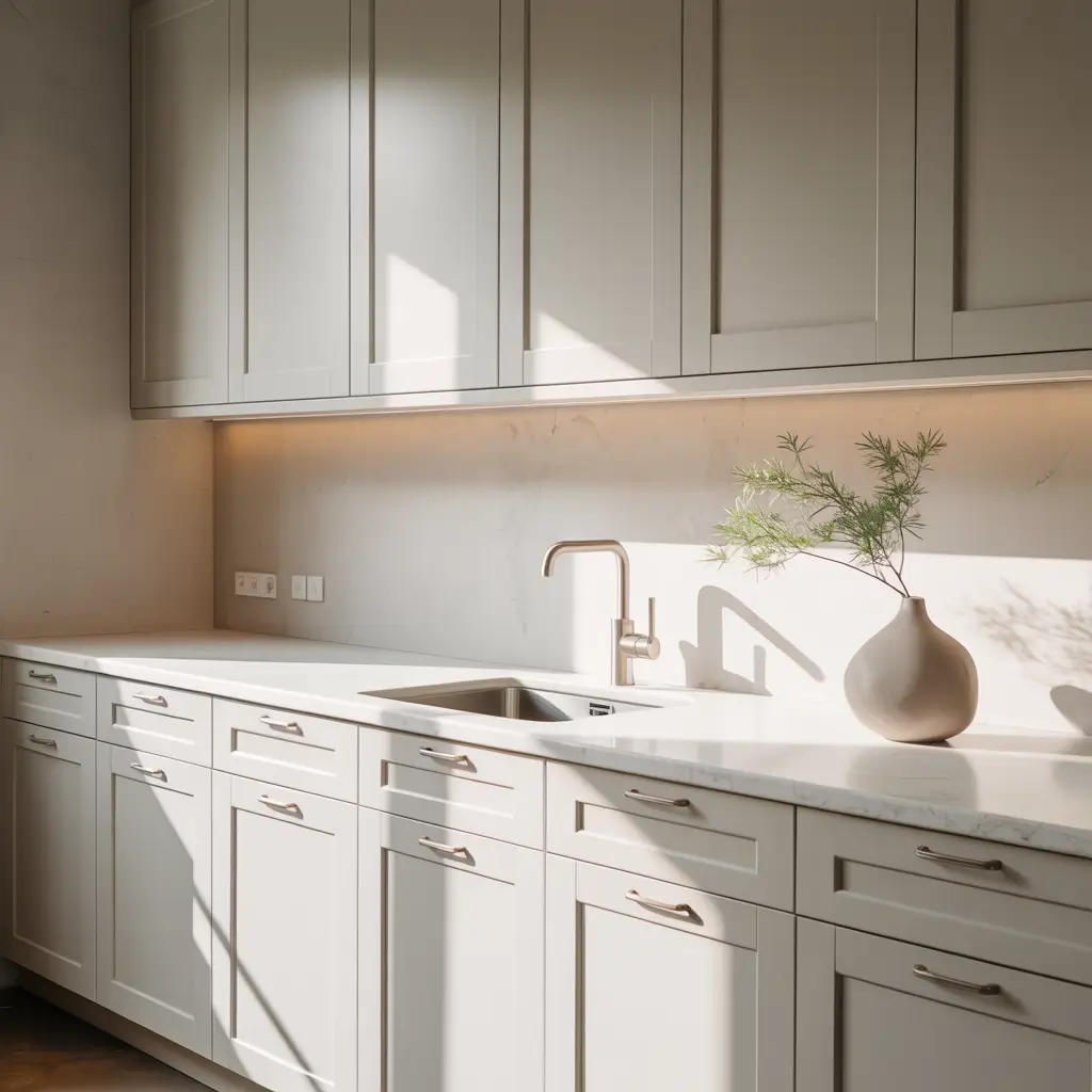 Minimalist White Shaker Cabinets with Handleless Look