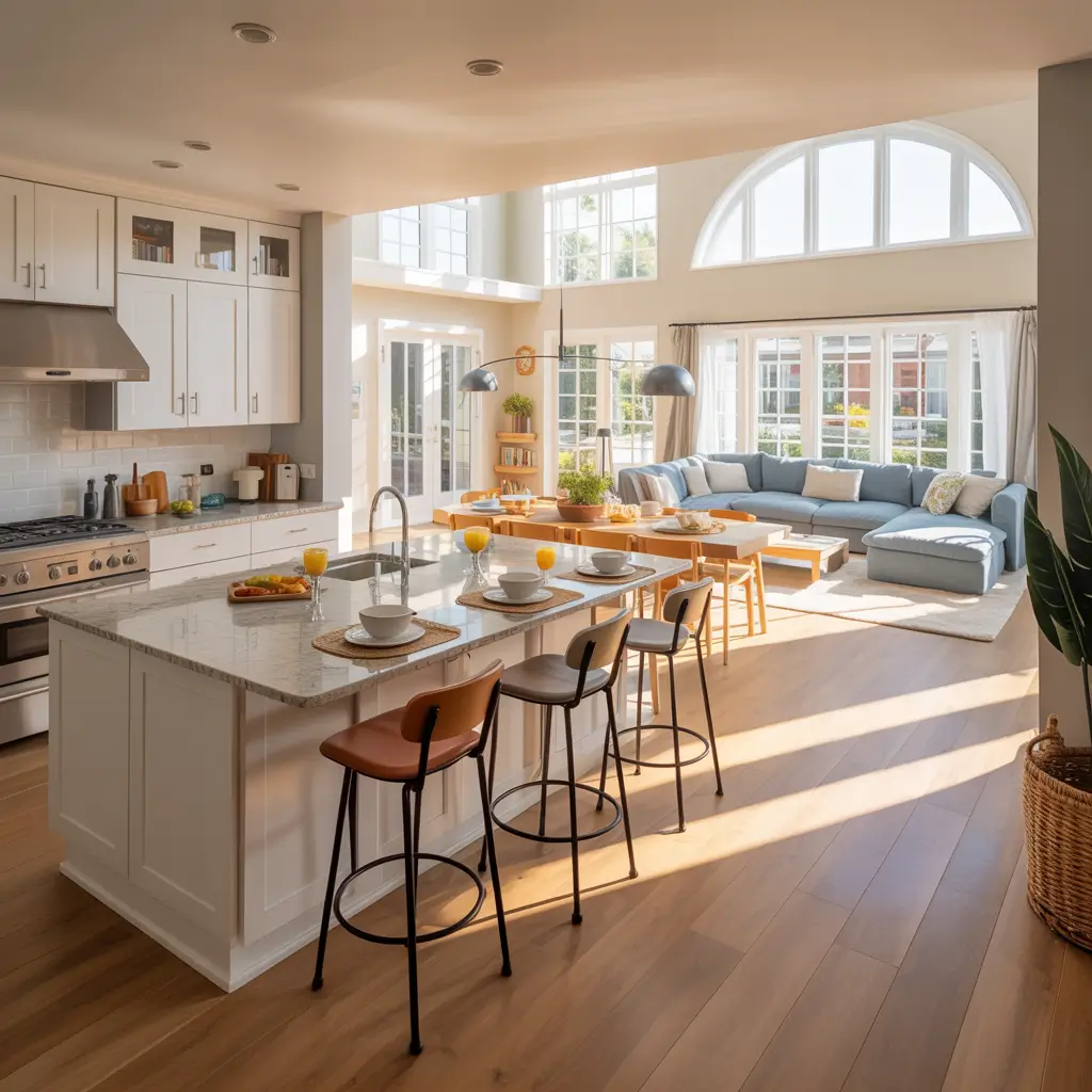 The brightness of white also helps maintain the airy, spacious feeling that makes open concepts so appealing. Dark cabinets in an open kitchen can feel heavy and make the entire space seem smaller.