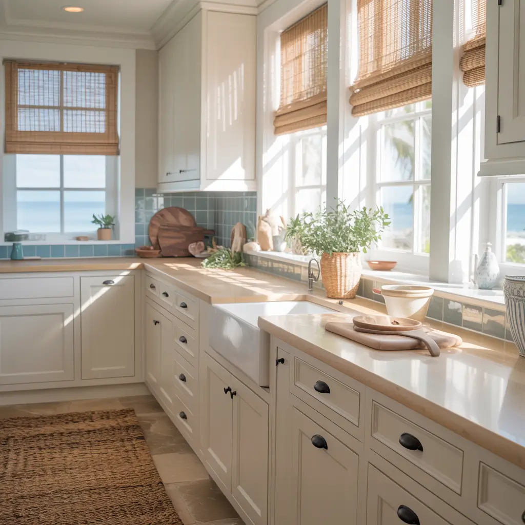 The combination feels breezy and effortless, like your kitchen just naturally looks this good without trying too hard. That’s the coastal magic.